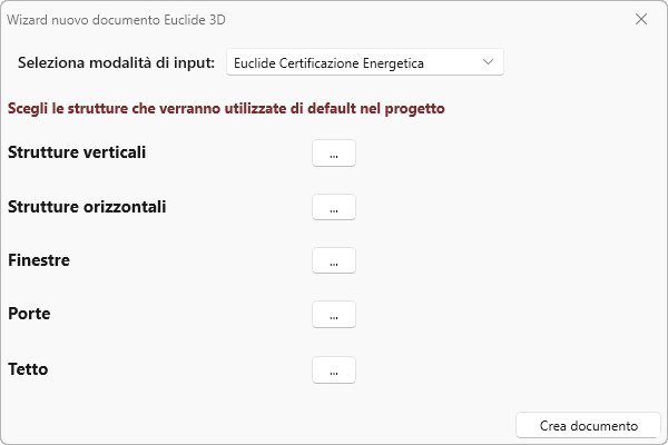 Cliccando sul pulsante con i tre puntini, si aprirà la banca dati di Euclide Certificazione Energetica che permetterà di assegnare le strutture di default.