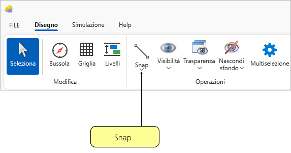 La funzione denominata Snap, accessibile dalla scheda Disegno, permette di selezionare uno o più snap.