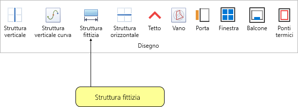 La funzione denominata Struttura fittizia, accessibile dalla scheda Disegno, permette la creazione di una struttura verticale fittizia sulla vista 2D corrente.