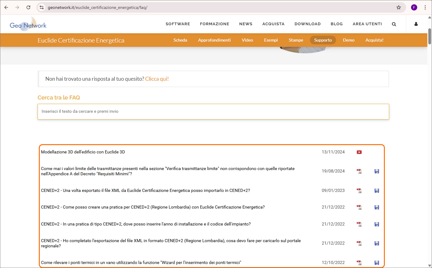 Nella pagina del sito è disponibile una ricerca incrementale che consente di filtrare schede tecniche e video in base alle parole chiave inserite.