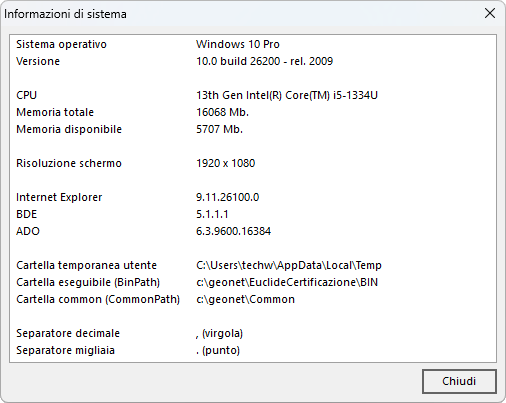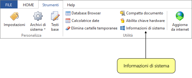 La funzione Informazioni di sistema, accessibile dal menu principale Strumenti, consente di visualizzare alcune informazione relative al PC su cui è installato il programma.