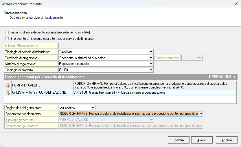 Dati generali impiantoRiscaldamentoProduzione ACSRaffrescamentoAssociazione Zone-Impianto