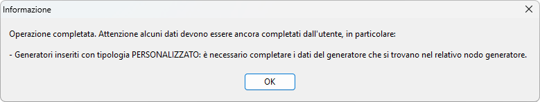 Alcuni dati dovranno essere completati dall'utente. I dati mancanti vengono segnalati dopo aver premuto su OK tramite un messaggio di informazione.