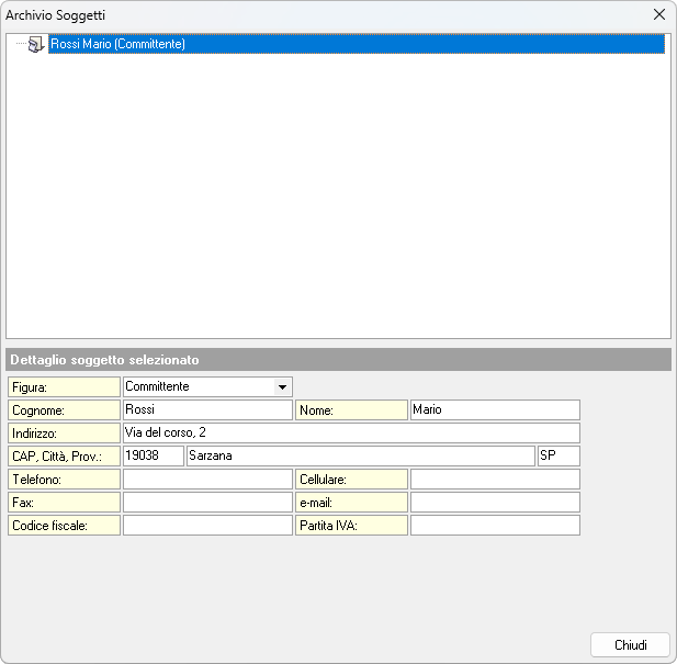 L'Archivio soggetti consente di memorizzare tutti i soggetti che possono intervenire nelle diverse pratiche.