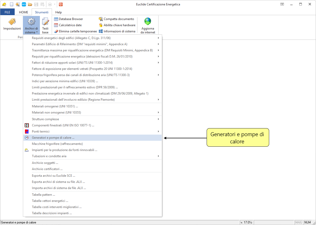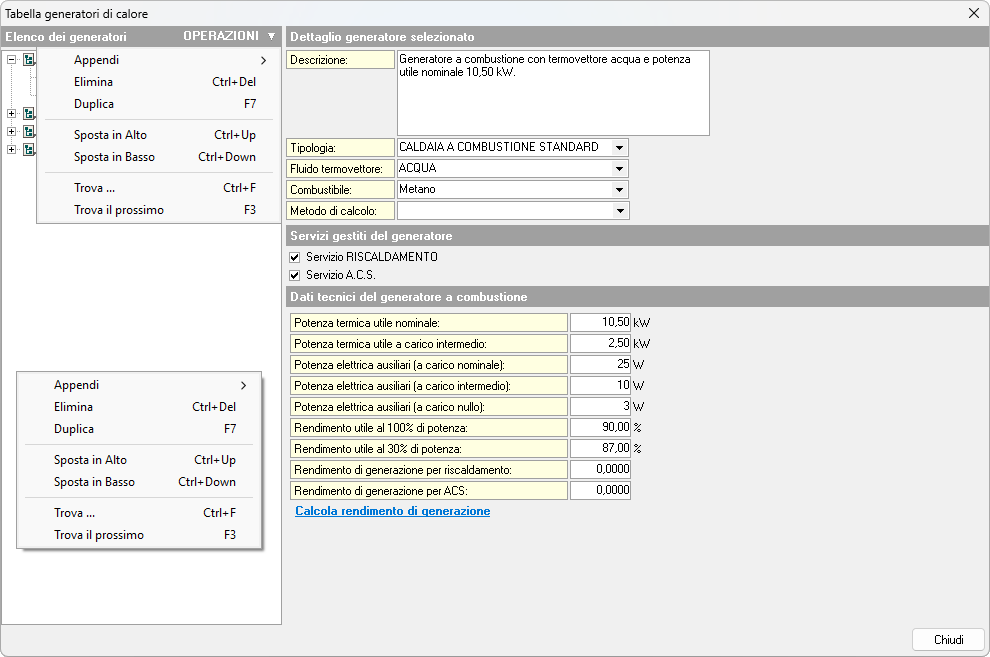 L'archivio dei Generatori contiene i dati relativi a generatori e pompe di calore utilizzabili all'interno dell'edificio.