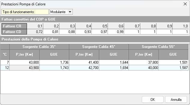 L'accesso alla tabella avviene tramite il comando Strumenti | Archivi di sistema | Generatori e pompe di calore.