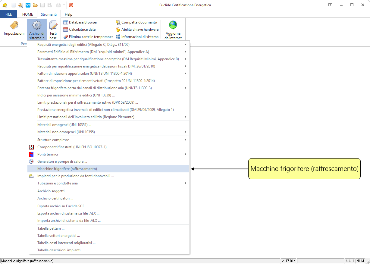 L'accesso alla tabella avviene tramite il comando Strumenti | Archivi di sistema | Macchine frigorifere (raffrescamento).