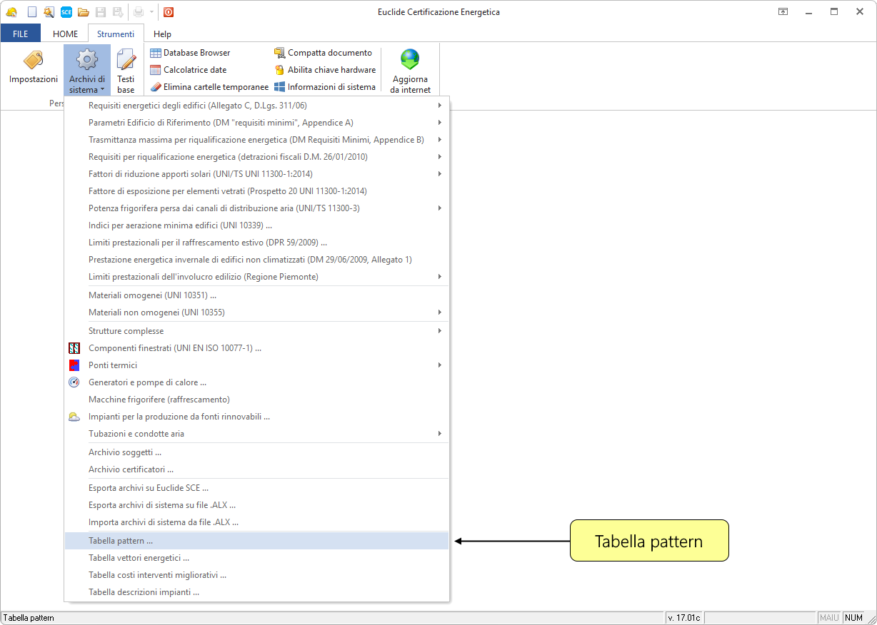 L'accesso alla tabella avviene tramite il comando Strumenti | Archivi di sistema | Tabella pattern....