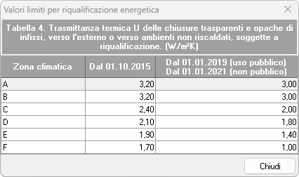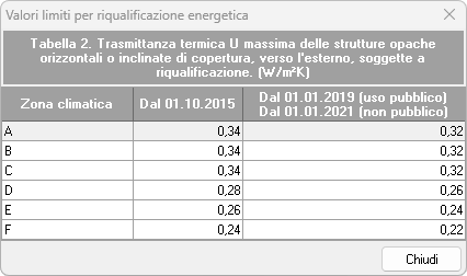 Di seguito sono riportate le tabelle relative ai valori limite di trasmittanza: