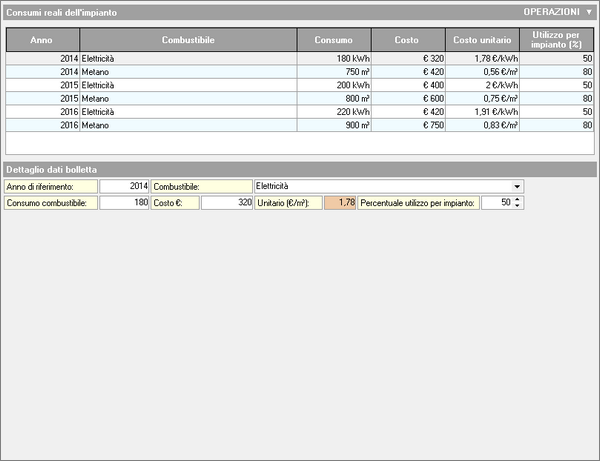 Nella pagina Consumi reali devono essere specificati i consumi di combustibile rilevati da bollette o fatture, relativi a uno o più anni di riferimento.