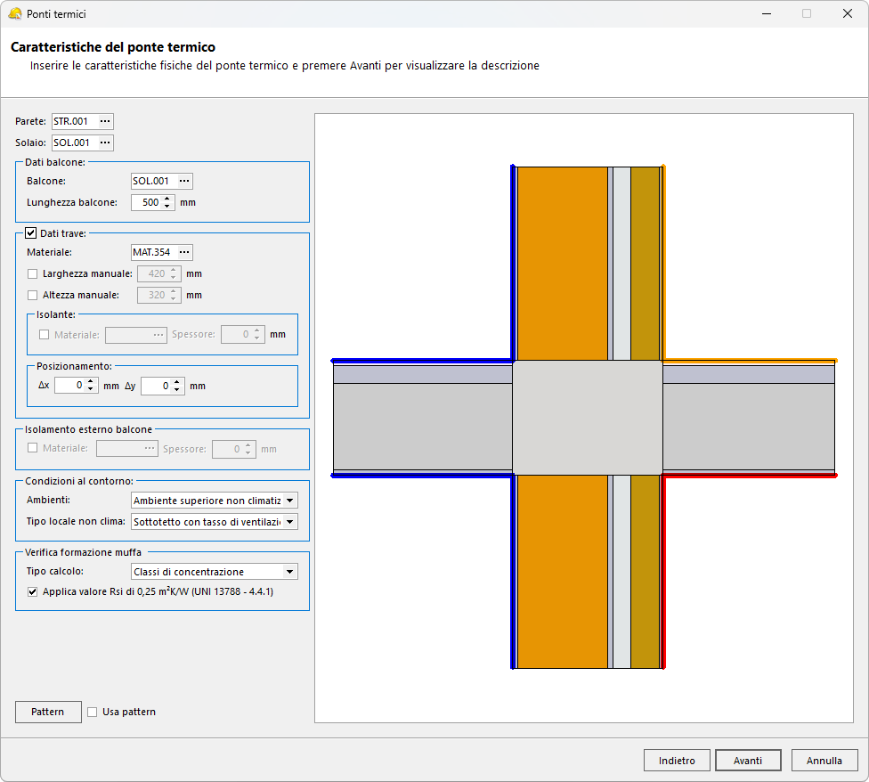 Quando tutti i campi che caratterizzano il ponte termico sono stati compilati, selezionare Avanti per accedere alla pagina successiva del wizard, dove è possibile personalizzare la descrizione del ponte termico in analisi.