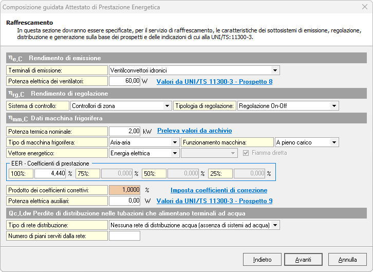 Fattore correttivoAltezza dei localiPotenza elettrica degli ausiliariSistema di regolazioneTipologia di prodotto