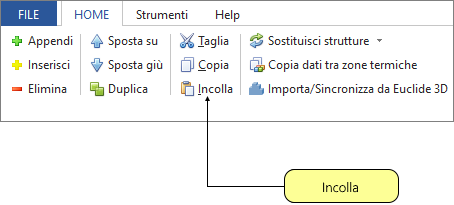 con il comando del menu principale HOME | Incolla con la combinazione di tasti CTRL + V con il relativo comando del pulsante OPERAZIONI