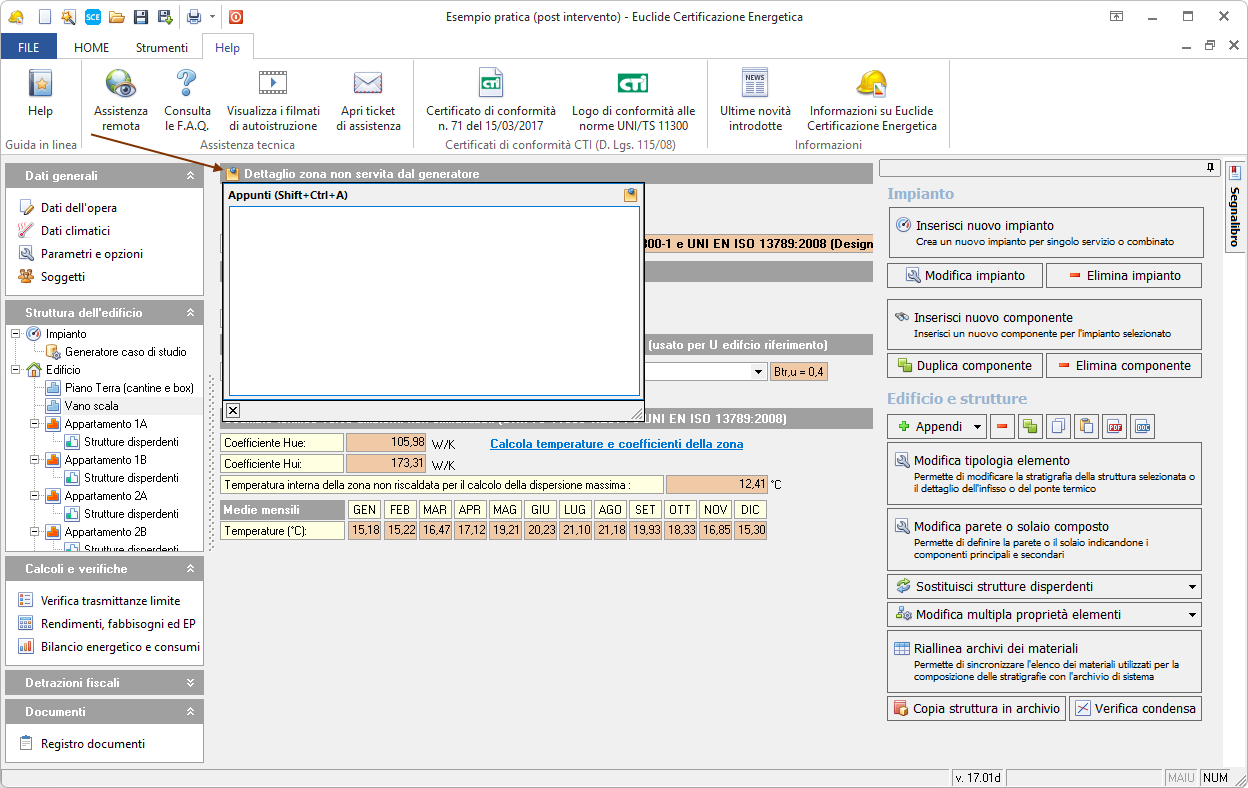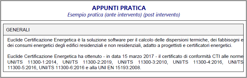 Euclide Certificazione Energetica consente di inserire appunti ad uso interno nelle seguenti sezioni: