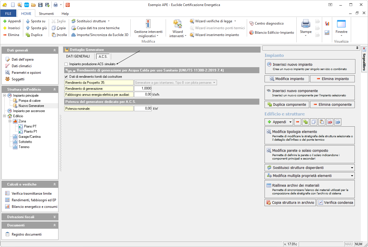 Nel caso sia necessario simulare un impianto di produzione ACS, occorre abilitare la spunta Impianto produzione ACS simulato.