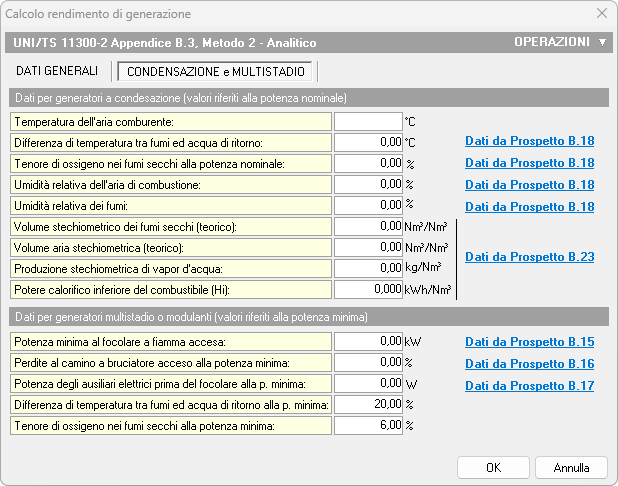 Se si sceglie il metodo di calcolo UNI/TS 11300-2 Appendice B.3, nella finestra di Calcola rendimento di generazione, occorre compilare tutti i dati.