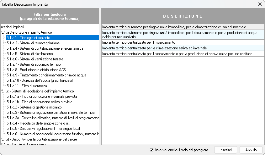 Dati relazione tecnica (impianto)