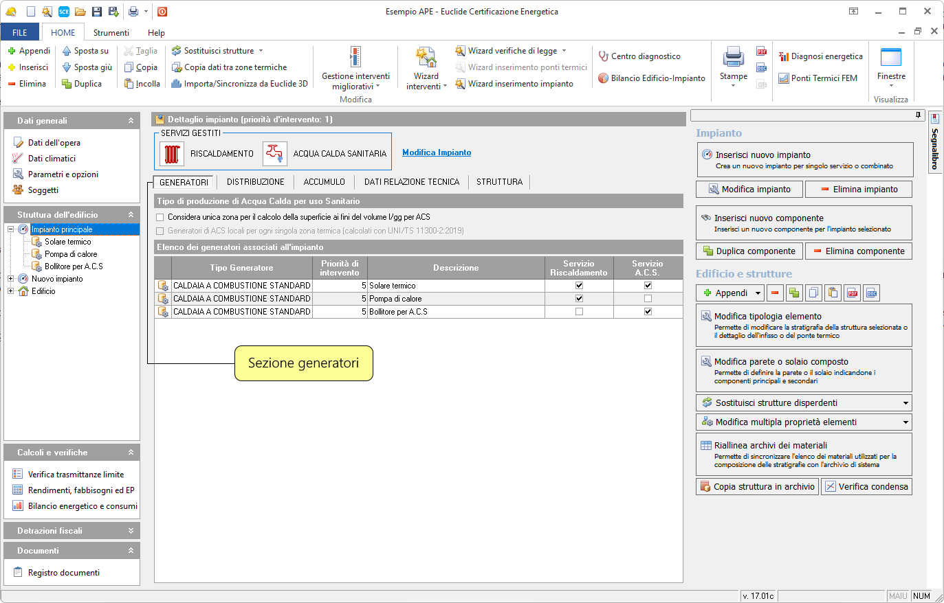 Nella prima sezione dell'Impianto si trova l'elenco dei generatori associati all'impianto.