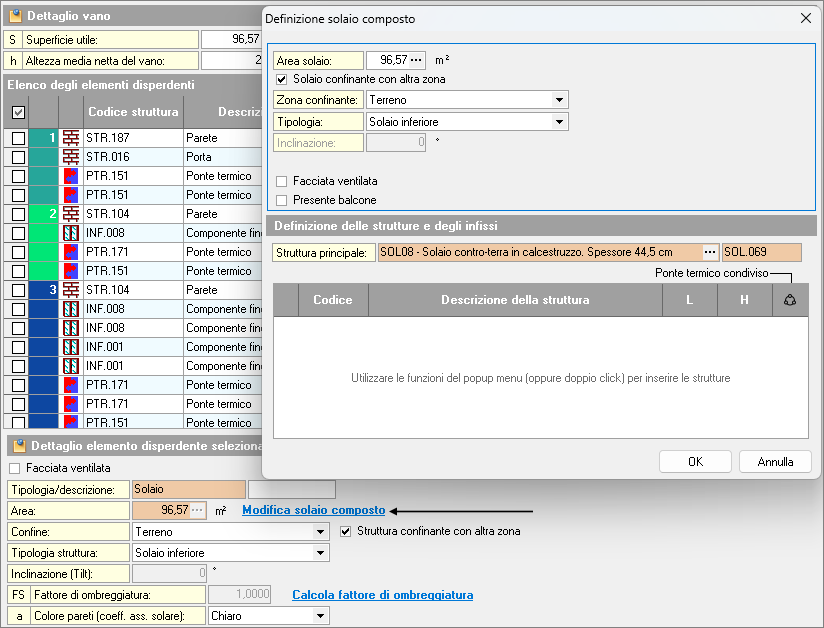 - Per elementi inseriti in parete composta o solaio composto, è presente il pulsante