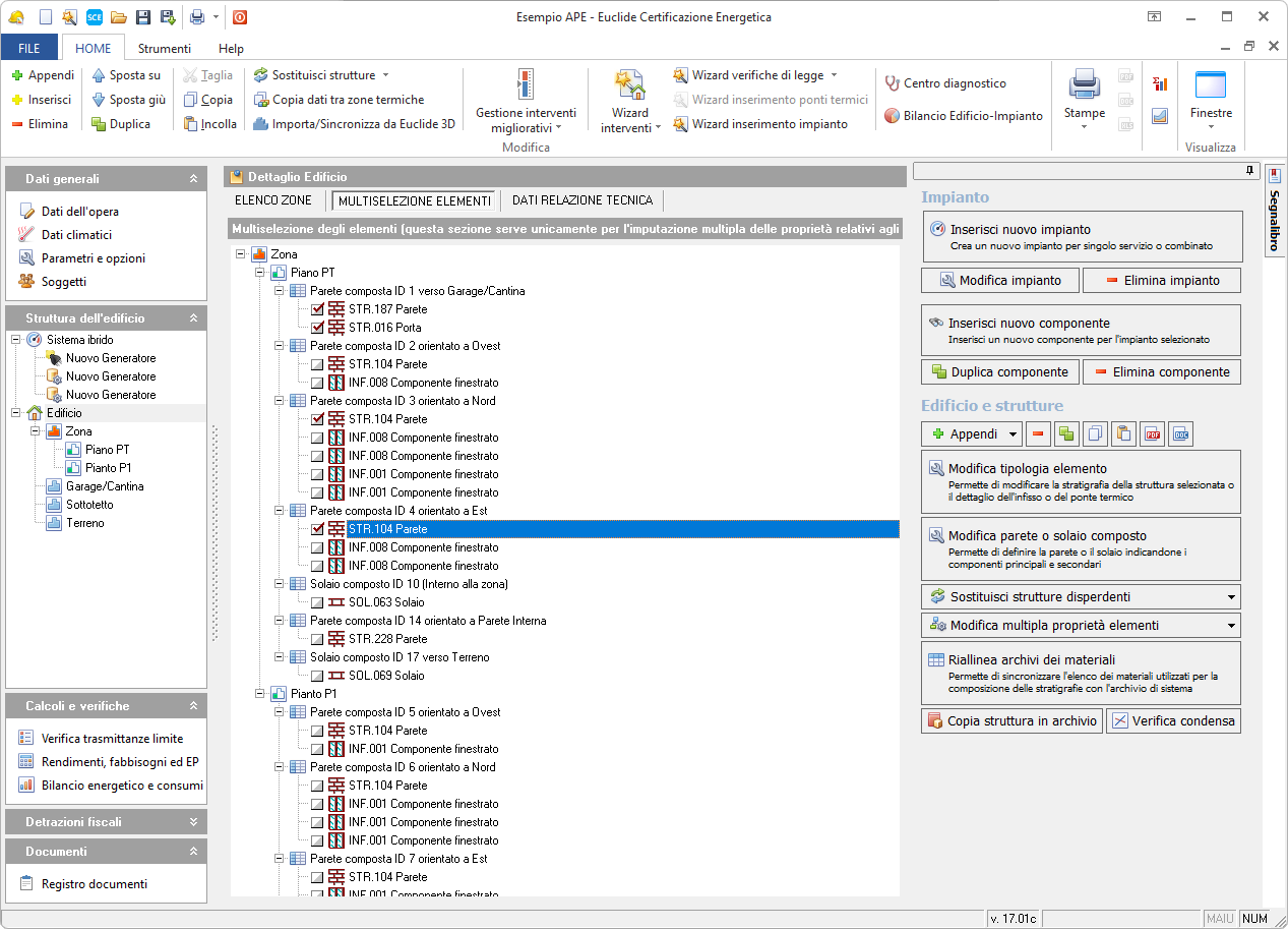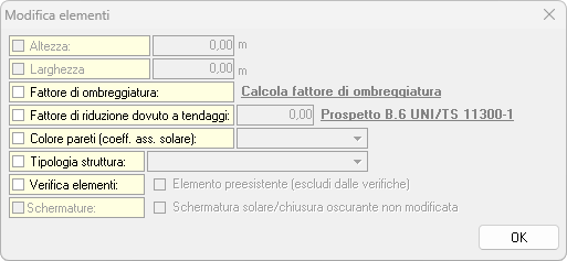 In questa schermata è possibile selezionare più elementi, anche appartenenti a zone termiche o vani diversi, spuntando il quadro a sinistra della descrizione.