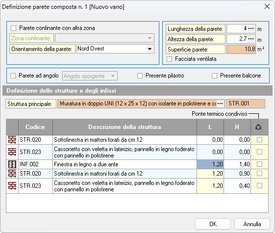 Una volta completata la struttura della parete composta e premuto OK, il software memorizza i dati inseriti.