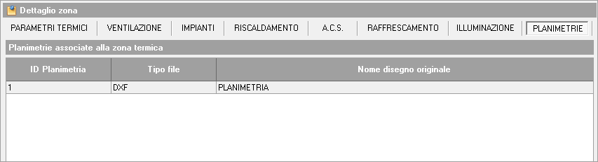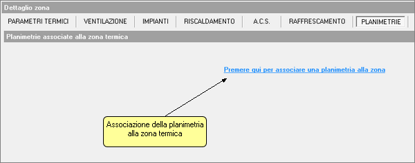 Nella pagina Planimetrie della zona termica è possibile collegare le planimetrie relative alla zona tramite le funzioni di input grafico.