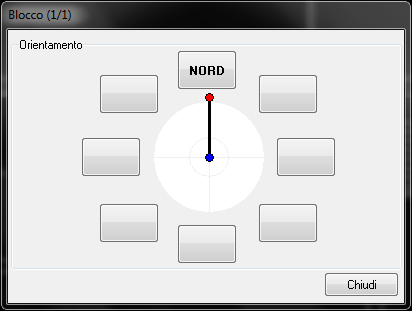 Dopo aver premuto Ok nella finestra di selezione dello sfondo, il programma richiede di impostare l'orientamento dell'edificio, indicando la direzione del Nord. In questo modo tutte le strutture rilevate avranno automaticamente l'orientamento corretto, determinante per il calcolo degli apporti solari.
