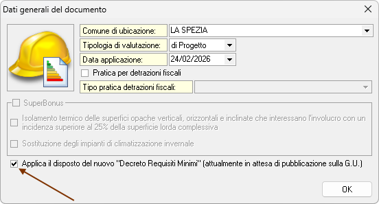 Per poter visualizzare il seguente nodo, è necessario - durante la creazione della pratica - attivare l'opzione Applica il disposto del nuovo "Decreto Requisiti Minimi" (attualmente in attesa di pubblicazione sulla G.U.).