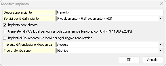 Se è stato scelto un impianto di climatizzazione estiva centralizzato, sarà possibile inserire tutte le caratteristiche dell'impianto direttamente in questa pagina.Impianti locali per ogni zona termica