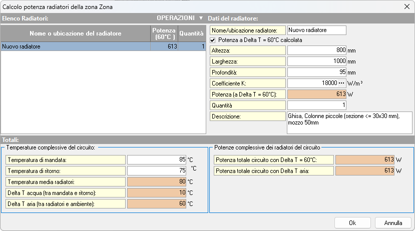 Semplificato da carico termicoDettagliato da dimensioni e potenze radiatori