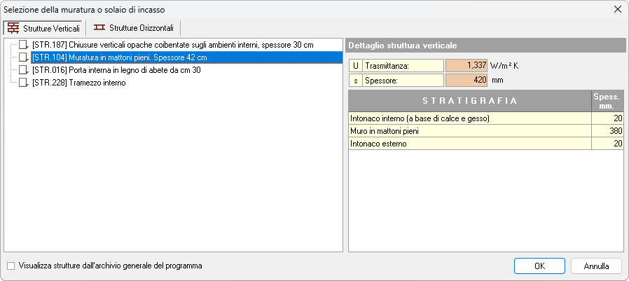 Se nel campo Terminale di erogazione viene selezionato un pannello radiante annegato (a pavimento, soffitto o parete, anche disaccoppiato termicamente), è possibile attivare il flag Pannelli radianti annegati in strutture disperdenti (calcola fattore correttivo Femb). Si attivano così i campi per i valori di trasmittanza U della struttura all'interno e all'esterno dei pannelli, calcolabili tramite il pulsante a lato indicando lo strato di annegamento.