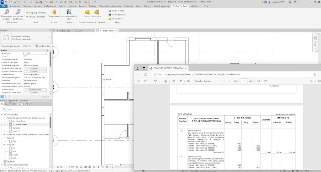 La funzione Aggiungi etichette consente di inserire direttamente nel disegno gli ID degli elementi selezionati. Questa funzionalità facilita l'identificazione degli elementi nel progetto e garantisce una corrispondenza diretta con le misurazioni generate in Euclide Computo & Contabilità e le sue relative stampe finali.