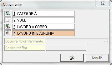 Per inserire un lavoro in economia, selezionare l'apposita opzione durante l'inserimento di una nuova voce.