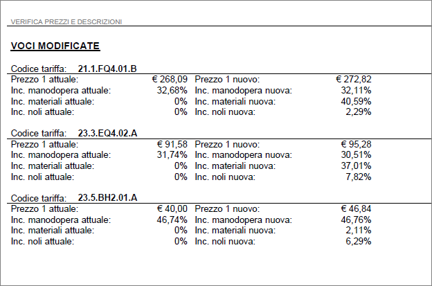 Inoltre, è possibile, tramite il pulsante Verifica differenze ottenere un report che riporterà tutte le differenze riscontrate fra le voci presenti nel computo e le voci del listino prezzi.