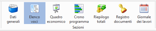 La sezione Elenco voci è dedicata all'inserimento e alla gestione di tutte le voci che compongono il documento.