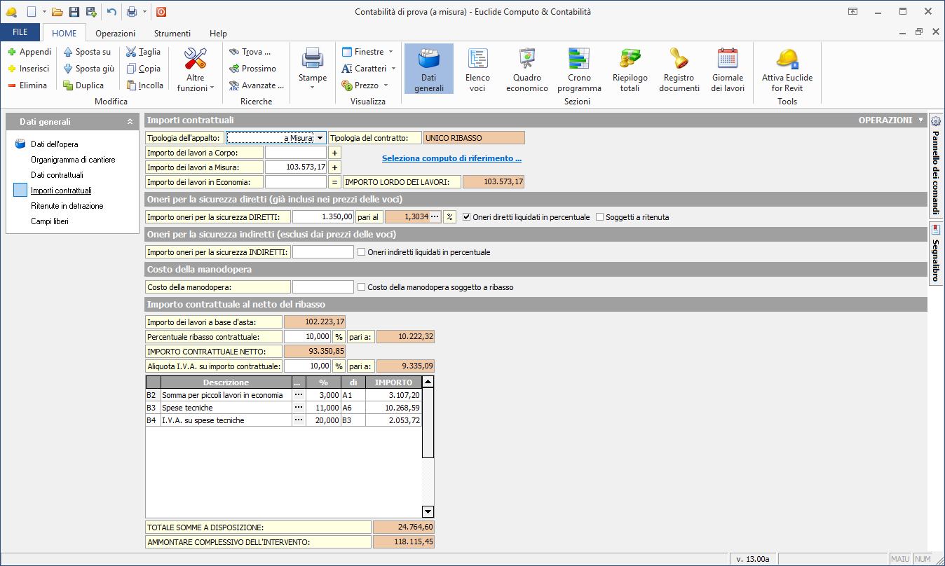 Dettagli del contratto: data e numero delibera, importo dell'anticipazione, data di consegna dei lavori, ecc. - Importi contrattuali