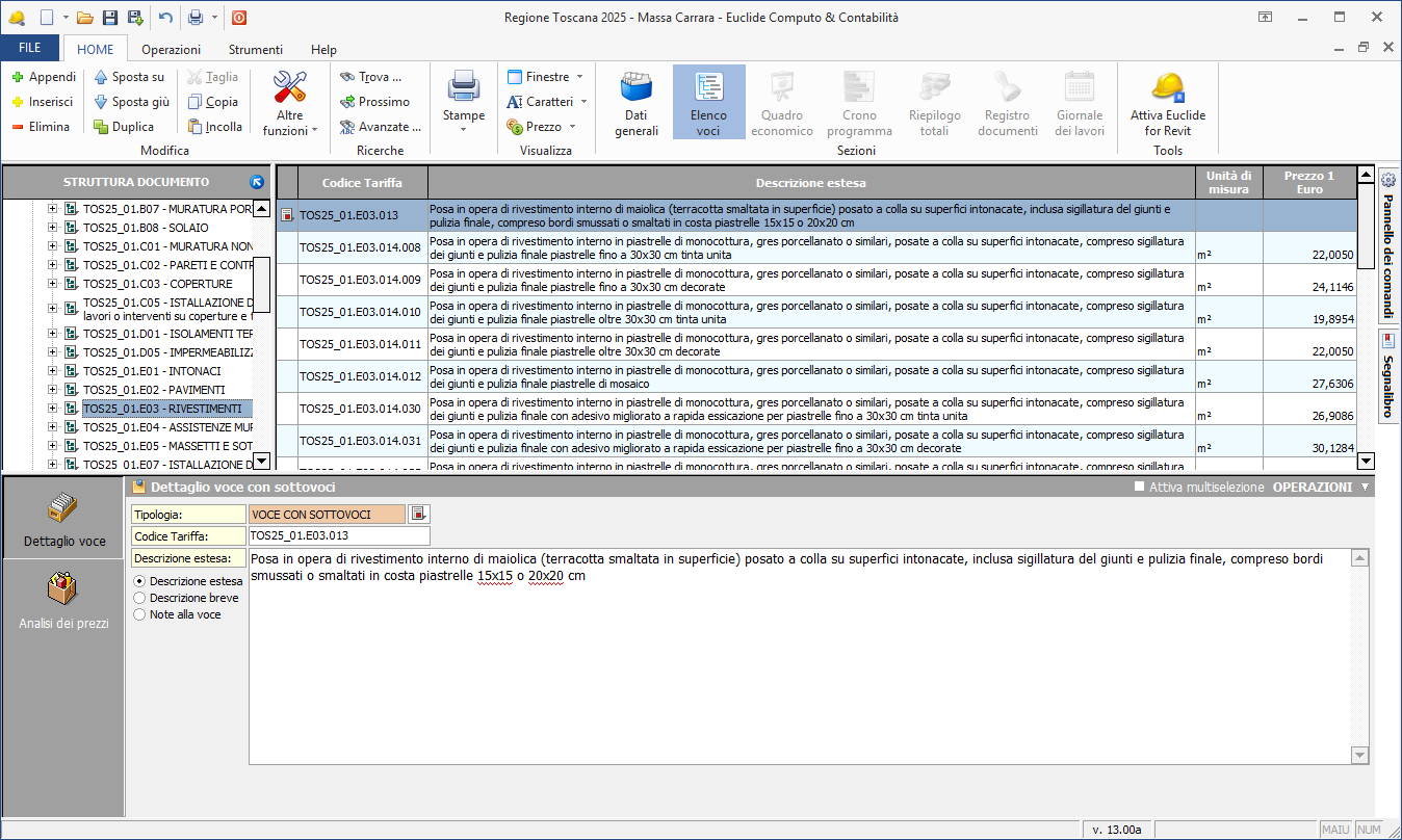 Disponibile solo se installato Euclide Capitolati. - Analisi piano di manutenzione