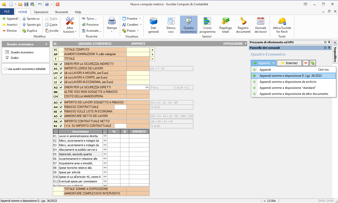 Il quadro economico è l'elaborato che raggiunge il livello di definizione finale di tutti i costi dell'intervento e rientra nell'ambito della documentazione prevista per il progetto esecutivo.