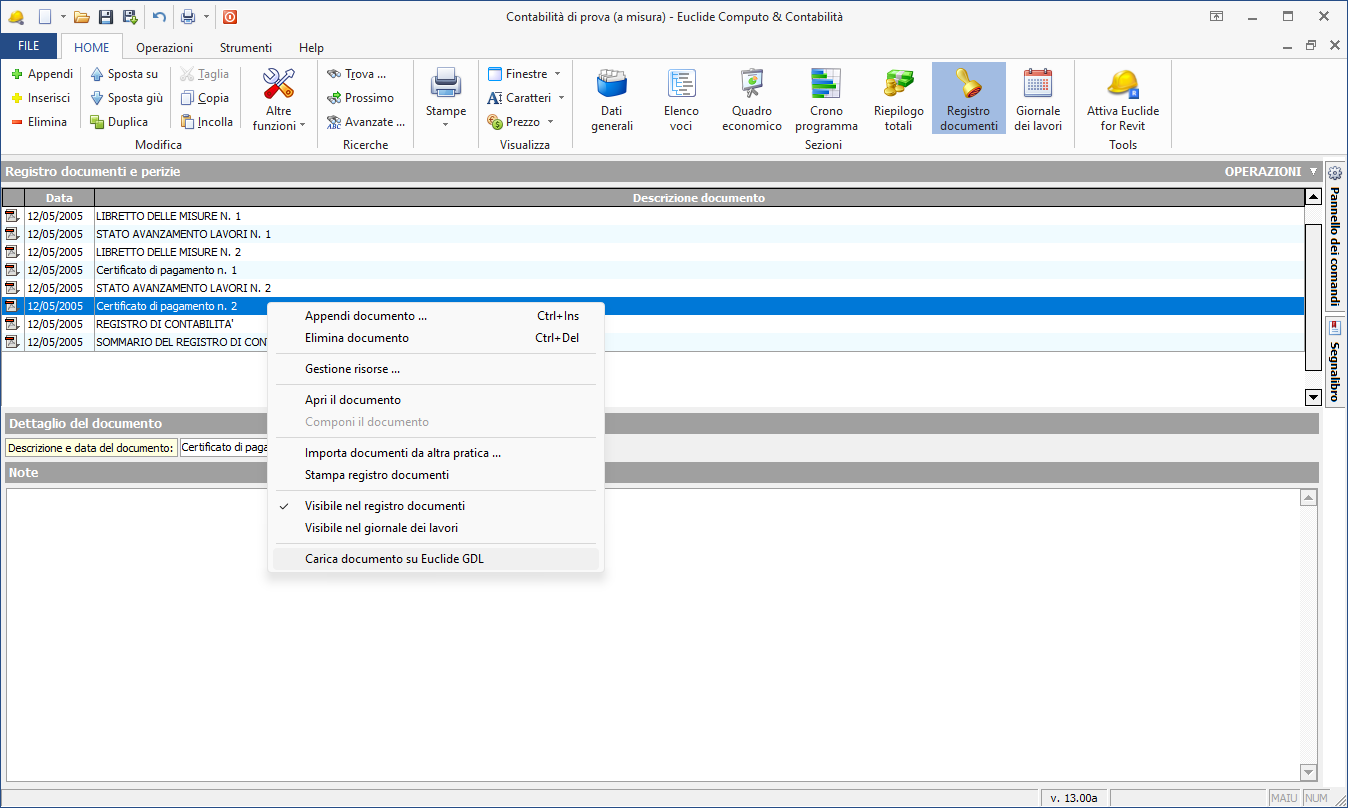 Tramite la sezione Registro documenti è possibile creare e gestire un archivio digitale dei documenti prodotti, che possono essere richiamati e consultati in qualsiasi momento. Da questa sezione è inoltre possibile rendere i documenti disponibili per l'applicazione web Euclide GDL.