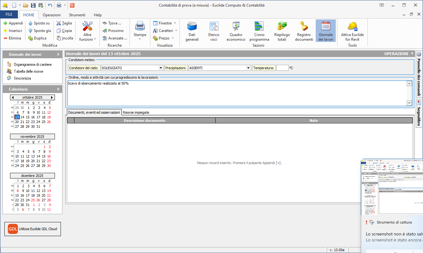 - giornale dei lavori in cloud, tramite l'applicazione Euclide GDL