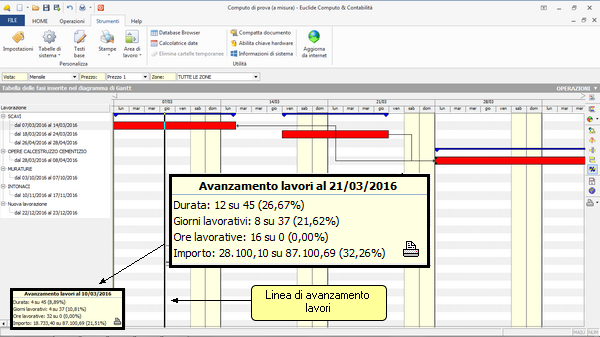 Avanzamento lavori - Spostare la barra sulla data 30/6