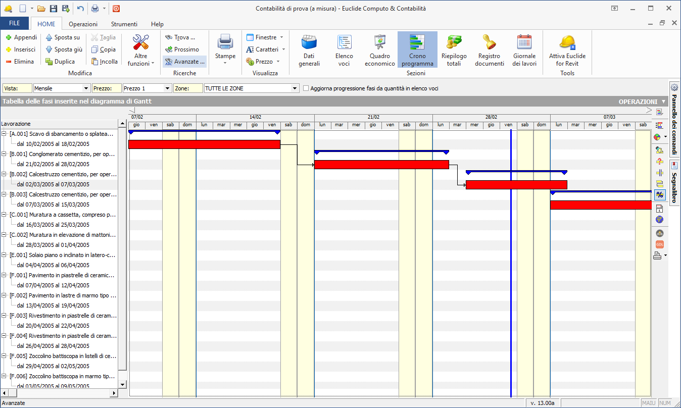 Il cronoprogramma dei lavori consente di programmare l'esecuzione dei lavori tramite la redazione di un diagramma di Gantt.