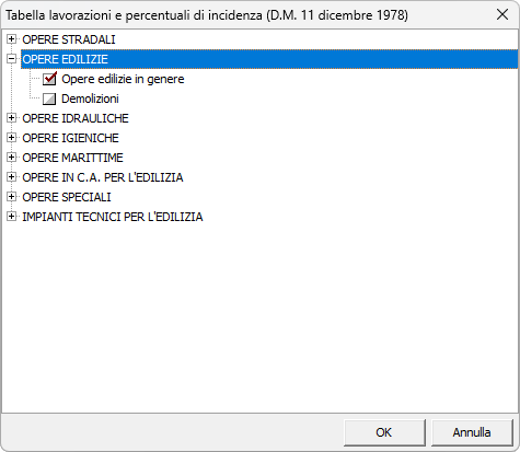 È possibile prelevare i valori percentuali delle risorse facendo riferimento alle tabelle del DM 11 dicembre 1978, tramite la funzione Preleva valori da tabella DM 11 dicembre 1978 dal pulsante OPERAZIONI.