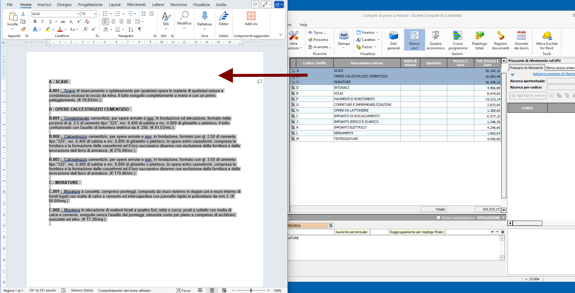 - avere aperti contemporaneamente sia il documento di Euclide che il file dell'applicazione in cui si vogliono copiare i dati