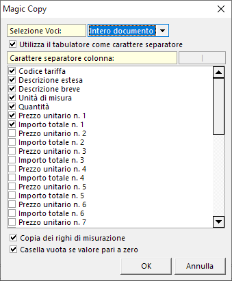 - indicare se effettuare la copia dei righi di misurazione o meno