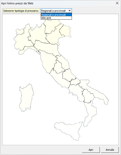 A titolo di esempio, si riporta, nella figura di seguito, la schermata di apertura listino prezzi da Web.