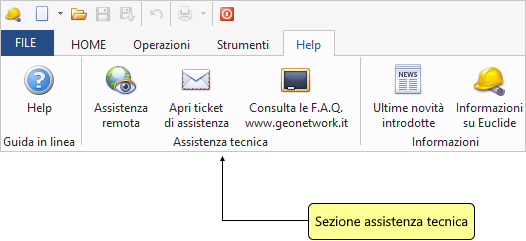 La sezione Assistenza tecnica, presente nel menu principale Help, è suddivisa nelle seguenti funzionalità: