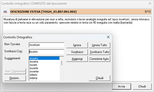 Con questa funzionalità, è possibile effettuare una verifica sui possibili errori ortografici che possono essere stati commessi nella stesura del documento.