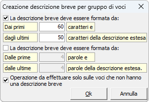 È possibile effettuare l'operazione solo sulle voci che non hanno una descrizione breve, barrando l'apposito bottone di spunta.