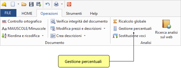 La funzione Gestione percentuali consente di modificare la percentuale a seconda delle voci selezionate.